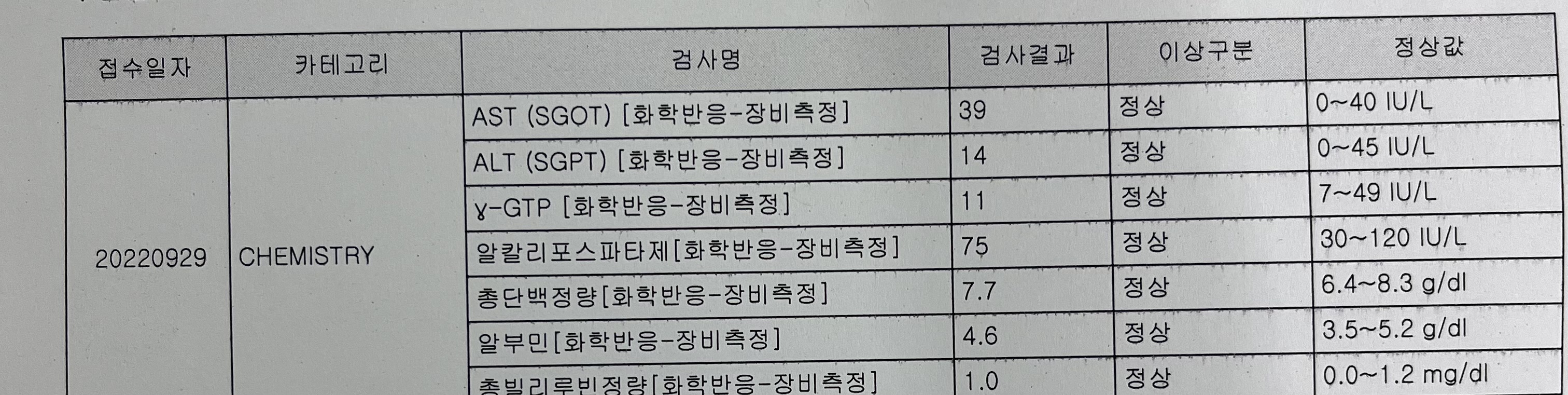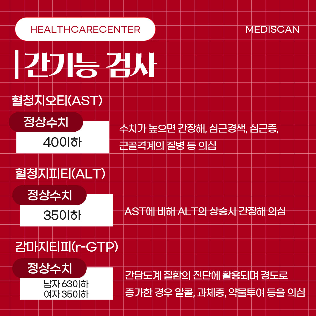 - AST (Aspartate Aminotransferase): 간 손상이 있을 때 이 효소가 증가할 수 있습니다.
