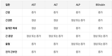 - ALP (Alkaline Phosphatase): 담관이나 간 기능을 평가하는 데 사용됩니다.