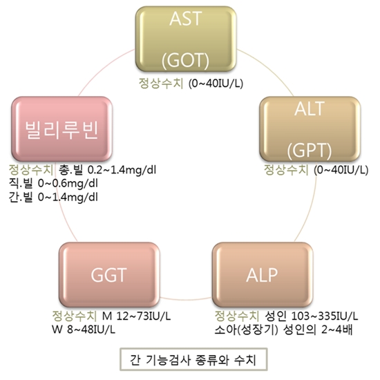 간기능 검사에서 주로 측정되는 효소와 그 정상 수치는 다음과 같습니다. 이러한 수치는 검사의 표준화됨에 따라 다를 수 있으며, 사용하는 검사 방법에 따라서도 차이가 있을 수 있습니다. 일반적으로 알려진 정상 수치는 다음과 같습니다:
