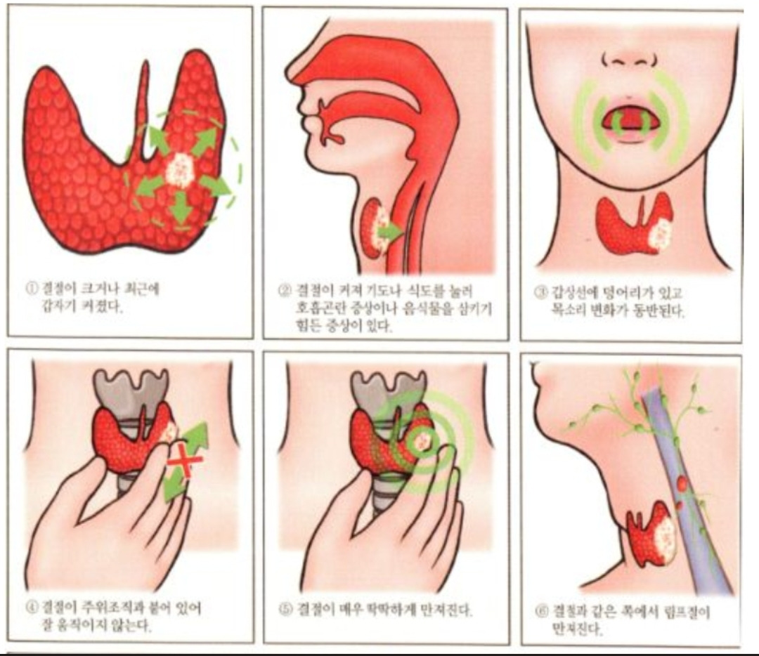 - 갑상선 결절: 목에서 발생하는 혹은 유두감이 느껴지는 결절이 갑상선암의 초기 신호일 수 있습니다. 이러한 결절이 만져지는 경우, 즉시 의료 전문가와 상담하는 것이 중요합니다.