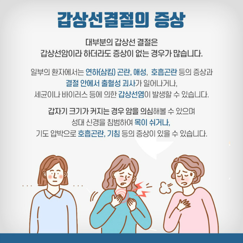 - 호흡곤란: 갑상선암이 암에 해당하는 조직의 압박으로 인해 기도의 일부가 막히거나 좁아질 수 있으며, 이로 인해 호흡이 어려워질 수 있습니다.