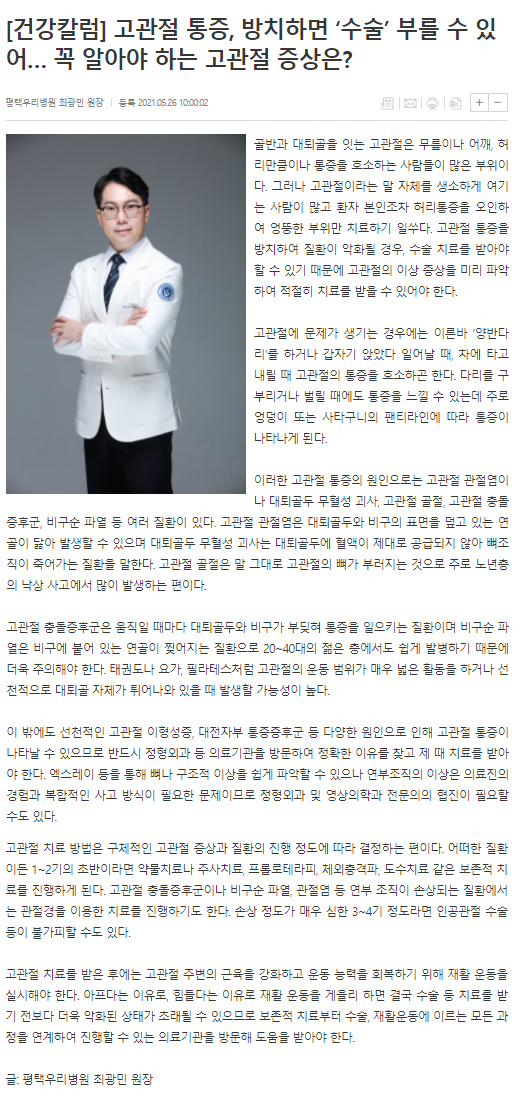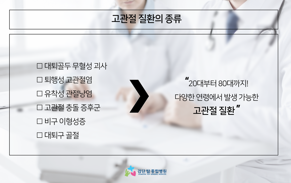 - 운동 부상: 과도한 운동이나 부적절한 운동으로 고관절이 상처받는 경우가 많습니다.
