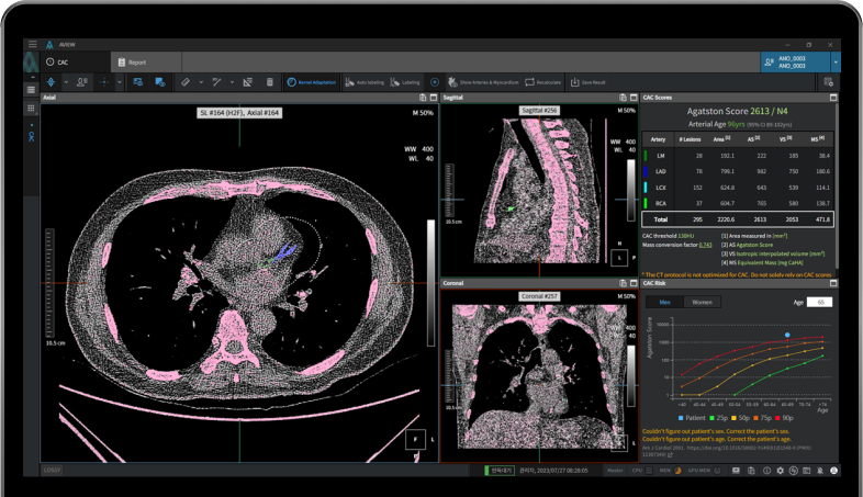 관상동맥 석회화는 관상동맥의 벽에 칼슘이 축적되는 상태를 말합니다. 이 과정은 일반적으로 노화와 관련이 있으며, 심혈관계 질환의 지표로 잘 알려져 있습니다. 관상동맥은 심장에 혈액을 공급하는 주요 혈관으로, 이곳에 석회화가 발생하면 혈액의 흐름이 방해받고 심장으로 가는 산소와 영양소의 수급에 어려움을 초래할 수 있습니다. 이 상태는 종종 무증상이기 때문에, 발견되었을 때 이미 심각한 문제로 발전해 있을 가능성이 높습니다.