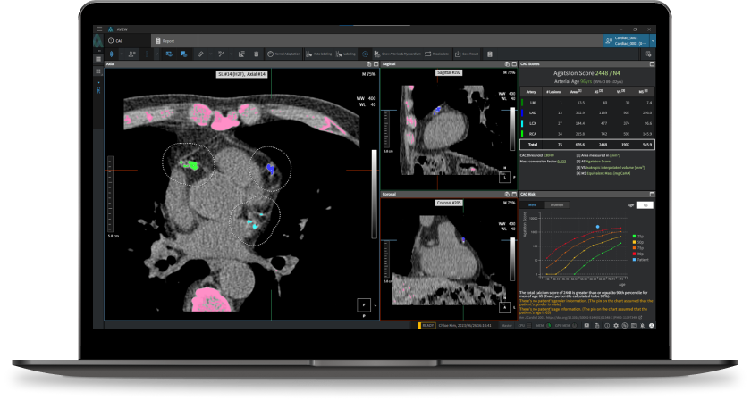 - CT 스캔: 관상동맥 석회화의 상태를 명확하게 볼 수 있는 비침습적인 검사 방법으로, 좌우 심장관의 석회화 수준을 확인할 수 있습니다. 많은 경우, 이 검사는 영화 한 편 보는 시간 안에 가능하여 매우 효율적입니다.
