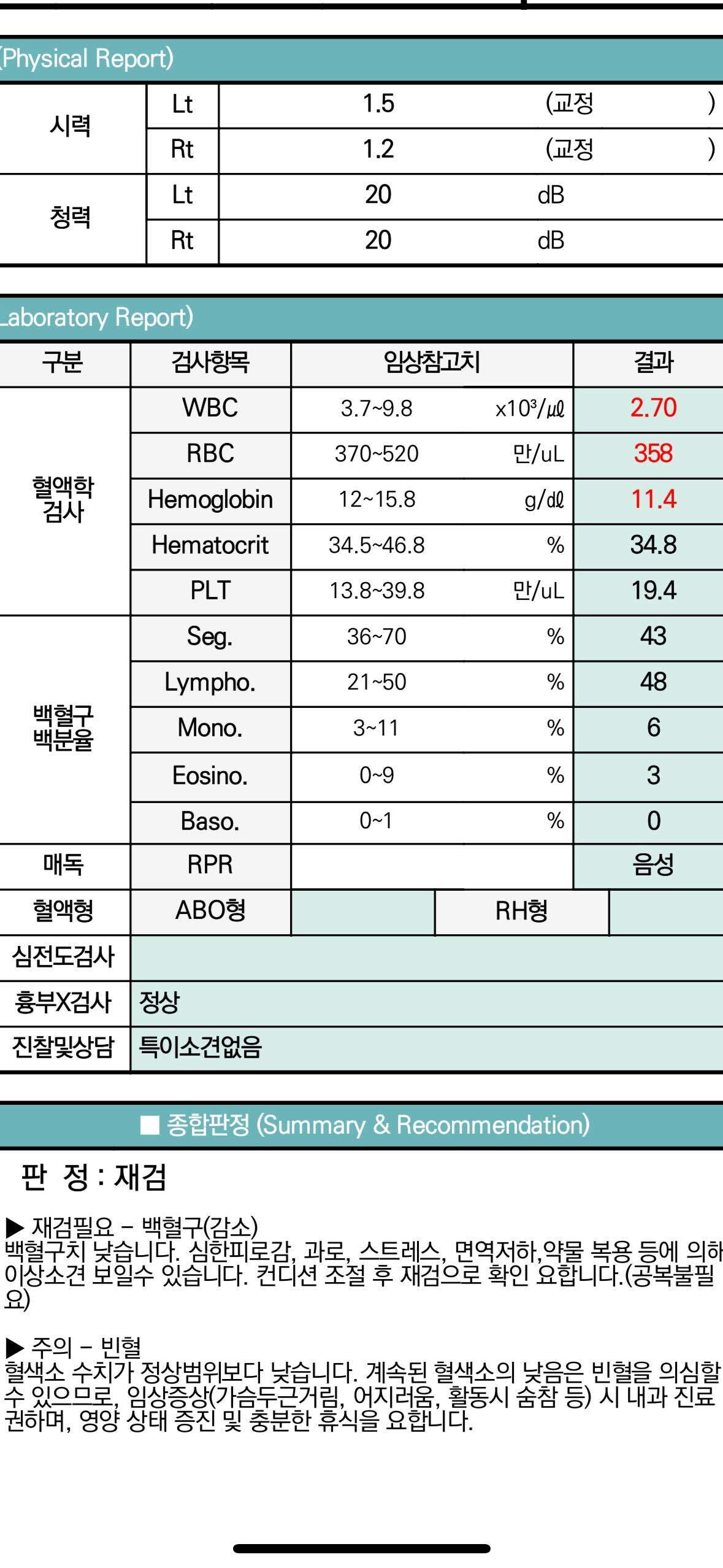 - 항생제: 일부 항생제의 부작용으로 백혈구 수치 저하 가능성