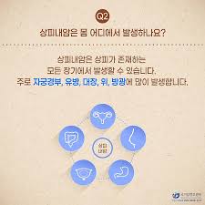 상피내암은 그 발생 위치에 따라 여러 가지 종류로 나눌 수 있습니다. 대표적인 상피내암의 종류는 다음과 같습니다: