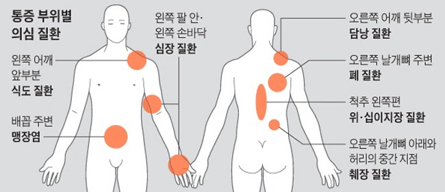 오른쪽 등 통증의 원인