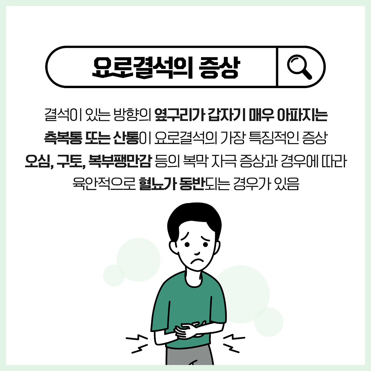 요로결석의 증상은 결석의 위치, 크기, 그리고 발생하는 통증의 정도에 따라 다양하게 나타납니다. 일반적으로 요로결석이 생겼을 때는 다음과 같은 주요 증상이 발생할 수 있습니다. 이러한 증상들은 대부분의 경우 갑작스럽게 시작되며, 환자의 일상생활에 큰 영향을 줄 수 있습니다.