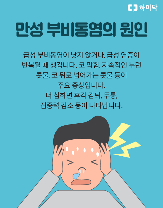 - 미각 및 후각 저하: 부비동의 염증으로 인해 후각이 둔화되거나 아예 없어진 경우도 있습니다.