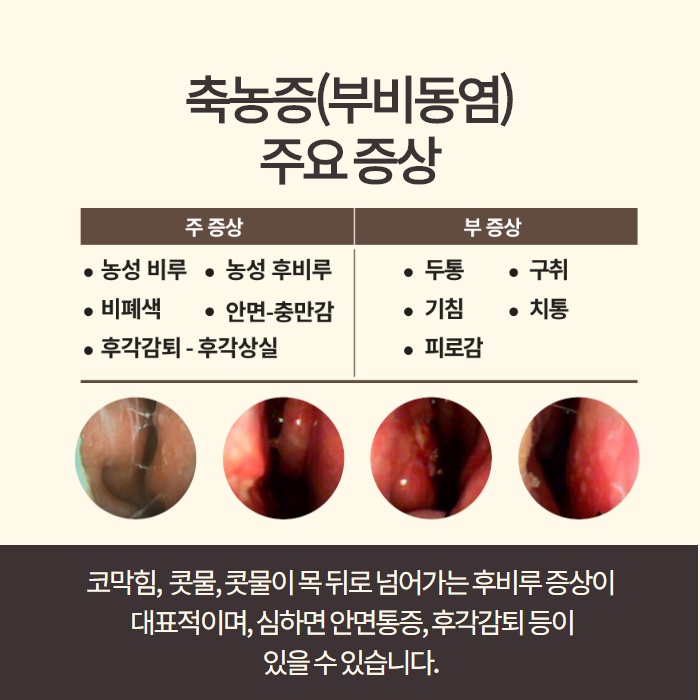 - 악취: 축농증이 심해지면 코에서 악취가 나는 경우도 있습니다.