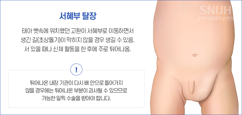 배꼽 탈장은 출생 시 배꼽 주변의 근육이 약해져 생기는 경우가 많습니다. 이로 인해 배꼽 부위에서 장 부위가 탈출하게 됩니다.