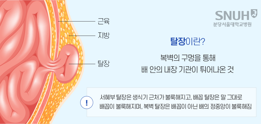 복벽 탈장은 복부의 약한 부분에서 발생하며, 복부 수술 후 유착이 발생하거나 근육이 약해져 발생할 수 있습니다.
