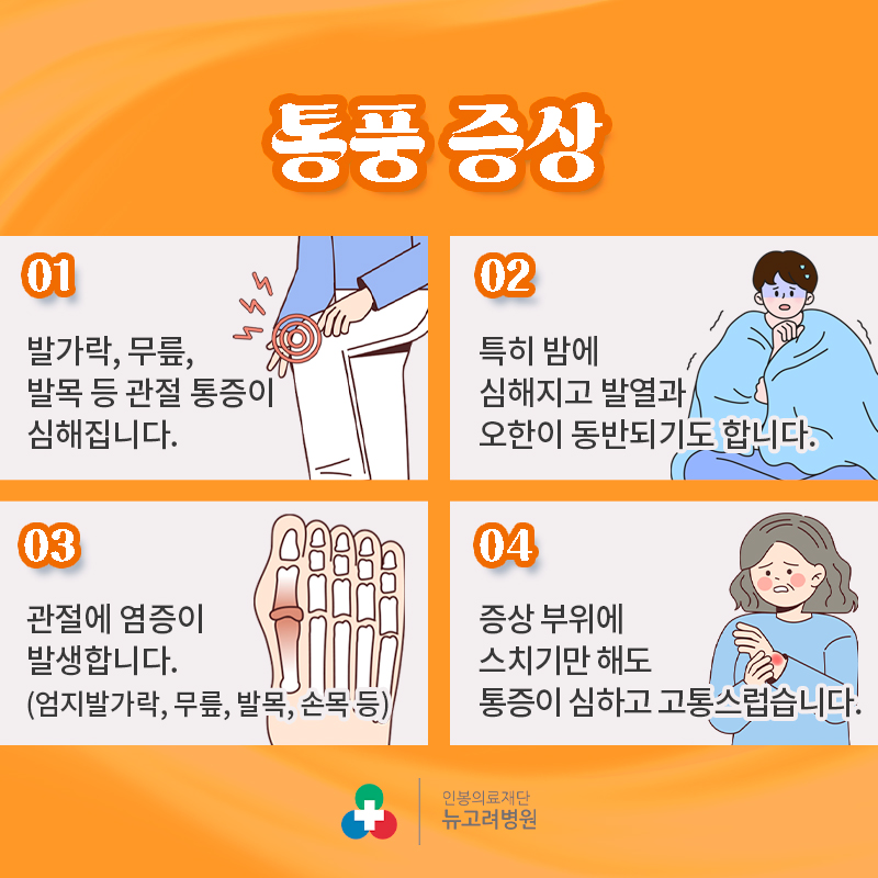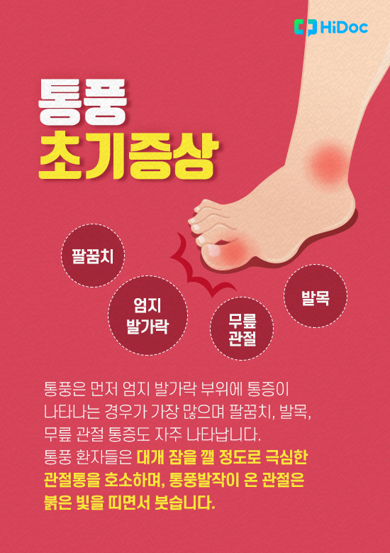 - 재발: 통풍은 주기적으로 재발하며, 재발 시 다시 극심한 통증을 동반합니다.