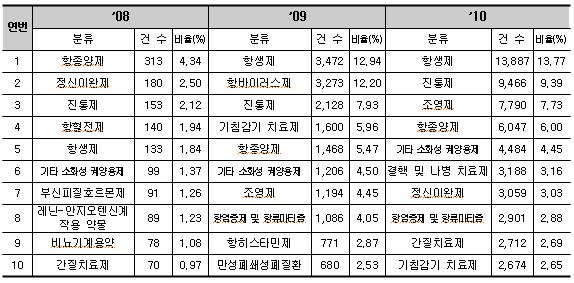 항생제의 대표적인 부작용