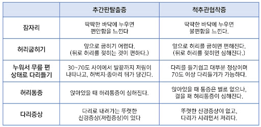 허리협착증의 증상