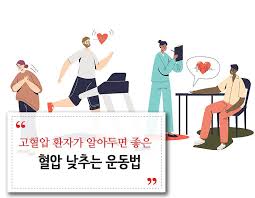 운동은 혈압을 낮추는 데 중요한 역할을 합니다. 규칙적인 유산소 운동은 심장을 더욱 강하게 하고, 혈액 순환을 개선하여 혈압을 낮춰주는 효과가 있습니다. 매일 30분의 산책, 자전거 타기, 수영 등을 권장합니다. 운동은 또한 체중 관리에도 도움을 주므로 비만인 경우 혈압 관리를 더욱 쉽게 만들어 줍니다.