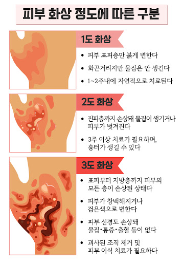 - 화학 물질에 의한 화상: 산이나 알칼리성 물질이 피부와 접촉할 때 발생합니다. 이러한 화상은 즉각적인 응급 처치가 필요합니다.